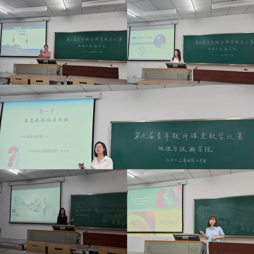 青年教师们认真研读课标,解读教材,精心备课,呈现了一堂堂有层次、有设计、有趣味的佳课。首先甘凤玲老师参赛课程为《水循环过程》,通过讲解自然界中一个庞大的动力系统,分析了水循环的每个过程以及表明水循环对于人类社会及生产活动的重要意义。冀琴老师参赛课程为《遥感技术》,冀老师从遥感的发展史入手,重点讲解了遥感的技术学习、应用领域等。杨淑梅老师参赛课程为《生态旅游》,杨老师从生态旅游的角度着手,以有特色的生态环境为主要景观的旅游,生动形象地讲解了生态旅游的历史背景、发展现状以及发展中存在的问题。周小曼老师参赛课程为酒店管理方向的产品营销,是市场营销学在酒店管理的具体应用,周老师运用生动的案例,通过对案例的分析,对市场进行细致的调查研究,了解广告营销在酒店管理中的有效应用。最后,林珂妍老师从民航业的角度出发,以客源国市场为参赛课程,生动介绍了我国目前民航客源国的现状,深入介绍了相关客源国的地理概况、人文概况、主要旅游资源等。