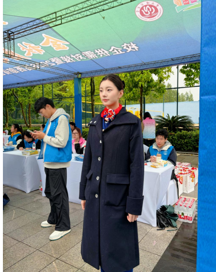 招聘会现场,航服学子以挺拔的身姿、标准的礼仪和流畅的沟通,为本次活动提供全流程服务。从签到引导、会场协调到面试咨询、会议服务,她们以“零差错”的表现赢得一致认可。但她们的贡献远不止于此——在招聘会专项服务区,学子们还化身“求职形象导师”,为应聘者提供形象设计指导,从发型妆容到着装搭配,帮助求职者打造符合岗位需求的职业形象,助力数百名求职者提升竞争力。