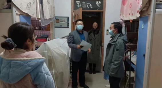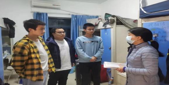 3.深入走访学生寝室,关爱引导送温暖。学院党政班子分小组,连续五天带领辅导员、班主任老师们深入走访学生宿舍,了解详细情况,解决学生实际问题。每走进一个寝室,学院领导都与同学们亲切交流,详细了解他们的目前的状态,询问关心学生在学习和生活中遇到的问题,以及对学校教学、管理以及服务的建议,提醒学生严格遵守疫情防控规定,同时学好专业知识,提高综合素养,警惕各类网络诈骗,加强体育锻炼,保持宿舍卫生,管理好校园生活。同学们深切感受到学院党政领导和老师们的关怀。
