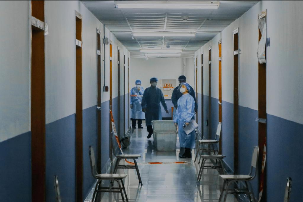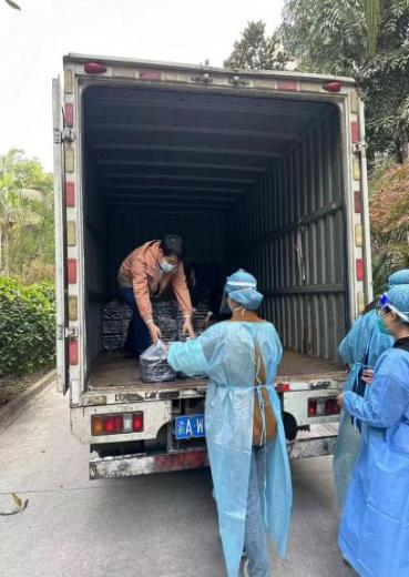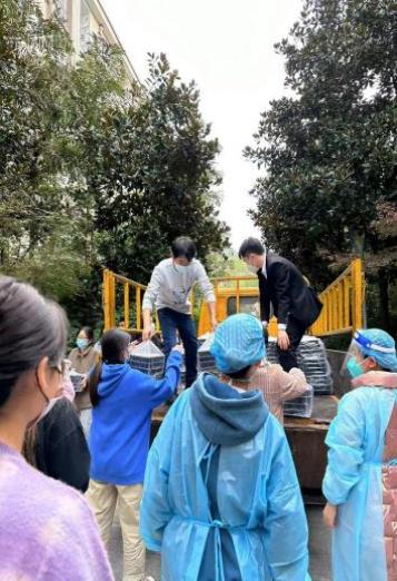 4.逆行高风险楼栋,为封控学生送餐。11月21日,校区内发现了学生确诊病例。学院党政班子全体成员积极报名成为教师志愿者,加入到每日送餐队伍中。封控楼栋是校区划定的高风险区域,党政班子成员始终坚守一线,每日身着防护服,按时将三餐送到学生寝室门口,及时反馈学生需求,送上口罩、泡面、水果等生活物资,细心提醒学生们做好防护,保持信心,乐观坚强面对每一天。