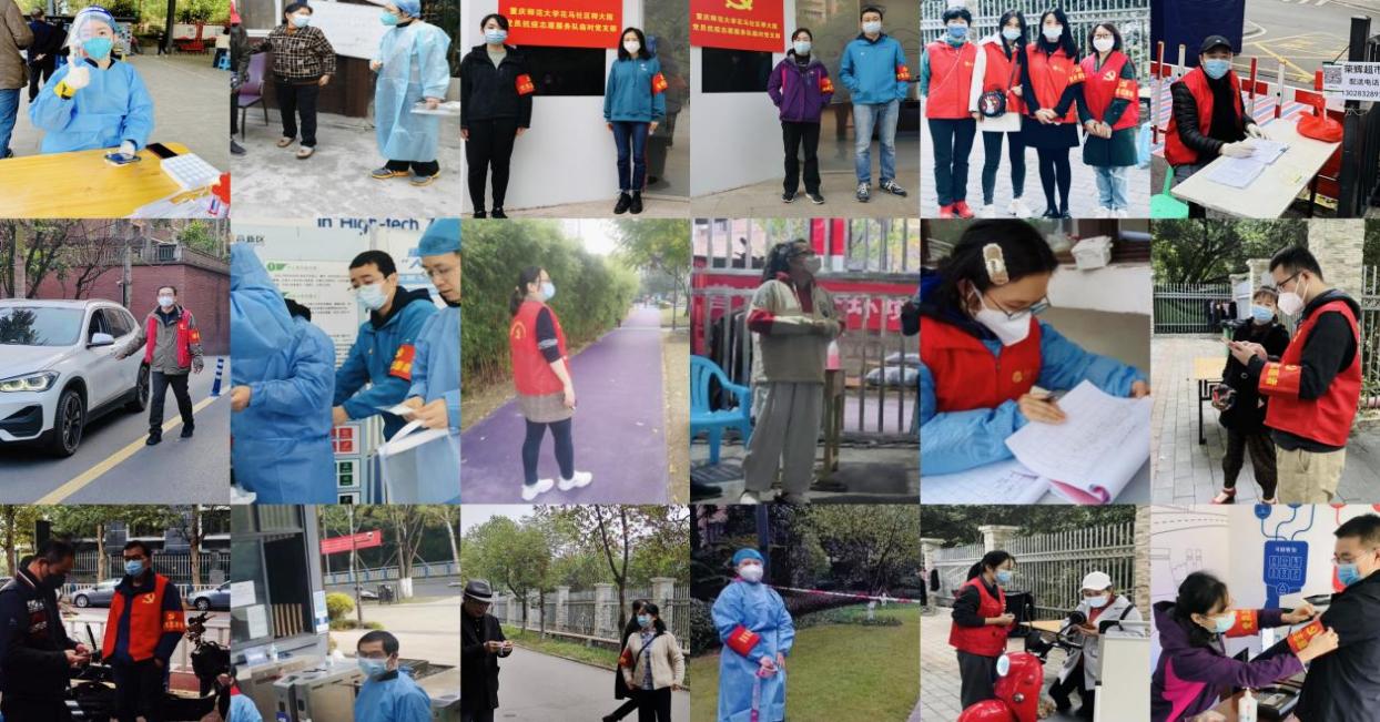 学院党委号召并调度党员干部、党支部积极发挥先锋模范和战斗堡垒作用,居家办公的党员干部全部主动下沉到所在社区,亮身份,随时待命接受社区布置的工作任务,用不同的方式为抗疫作出无私的奉献,展现出学院党员良好的教师风尚、师者风范、党员风采。他们的工作岗位位于该居住社区的各个角落,有核酸检测信息登记、核酸检测点秩序维护、小区大门进出管理、沿街商铺巡查及临时区域管控、小区巡查等,用他们的细致耐心协助所在社区做好了琐细繁杂的防控事务。