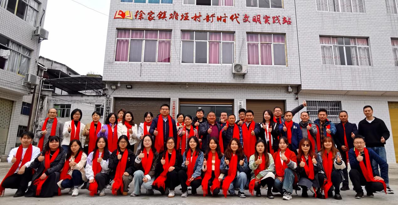 (PA视讯党员师生在杨国胜所驻徐家镇塘垭村新时代文明实践站前合影)