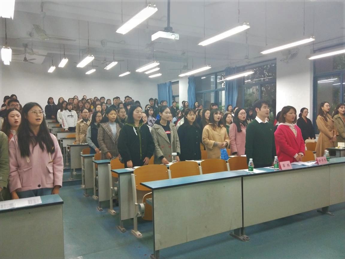 此次的活动主持人由赵浣玎同学担任。典礼在同学们以及老师们铿锵有力的歌声中拉开序幕。首先,由班主任舒子芩老师宣布网络学习议程,在此之前,对同学们首先提出的就是态度问题,细节看人品,凡是从小事做起,用心对待每一件不管是小事还是大事,用身边的小事一点点渗透,一点点影响他人。随后对在场的每一位同学提出三点殷切的希望。第一,热心。无论是作为一名预备党员还是发展对象,亦或者是群众。都要学会热心,对工作热心,对学习热心,对他人热心,热心帮助他人;第二,学习。除了在其他方面锻炼自己以外,学习是第一个不能落下的,根据马克思主义的理论,要求学生思想政治道德思想和科学文化能力相结合,二者不能弃其一;第三,无重大错误。作为一名预备党员或者发展对象,要有绝对高的思想觉悟,不仅自己不能知错犯错,而且还要带动身边的同学向积极的、正确的方向前进。紧接着讲解了网络学习的程序以及注册的程序。本次学习共分为五个步骤。第一,网络在线课程学习,共计32个学时;第二,交流研讨,以支部为单位进行主题讨论活动;第三,在线考试;第四,写思想汇报,结合培训、学习以及自身的体会,完成800字的思想汇报;第五,学院统一订印学时和成绩。