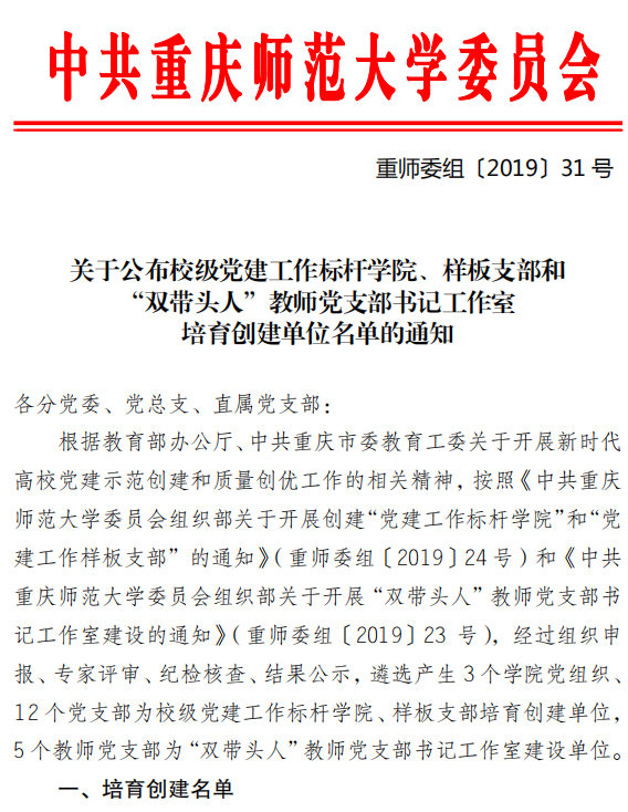 学院教工一支部获批学校首批“双带头人”教师党支部书记工作室培育单位
