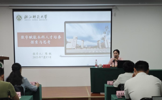 然后,浙江师范大学教务处处长陈敏教授为培训班成员带来了题为《数字赋能本科人才培养探索与思考》的专题讲座。陈处长结合浙江师范大学教务教学过程中的实际案例,为培训班成员介绍了学校在数字化教学平台搭建、课程体系重构以及教学模式创新等方面的成功经验与探索。