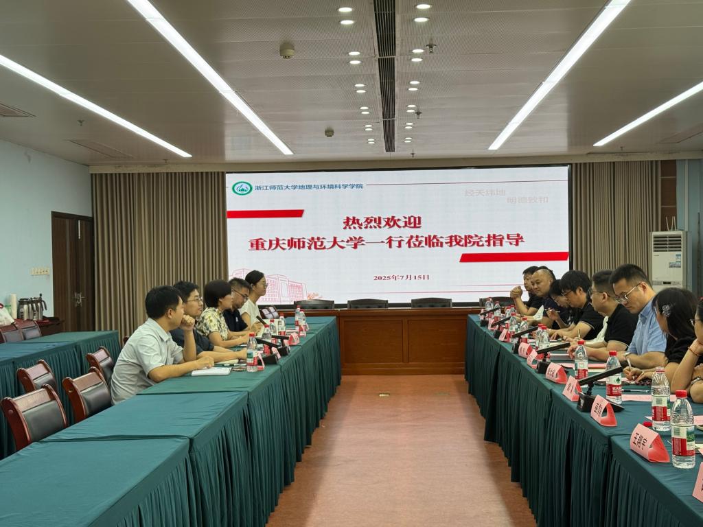 于海瀛副院长详细介绍了浙江师范大学地理与环境科学学院的发展历程、学科布局、师资力量、科学研究、人才培养成果以及未来发展规划,分享了学院在推动学科高质量发展方面的宝贵经验。随后双方进行了热烈的交流,双方教师围绕党建工作交流、人才培养与深造、学科建设与博士点申报、实践教学探索和科研能力提升等多个核心议题展开了深入而富有成效的讨论交流。