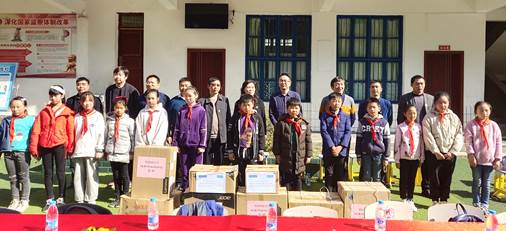 向杉木小学的学生们捐赠图书和文具