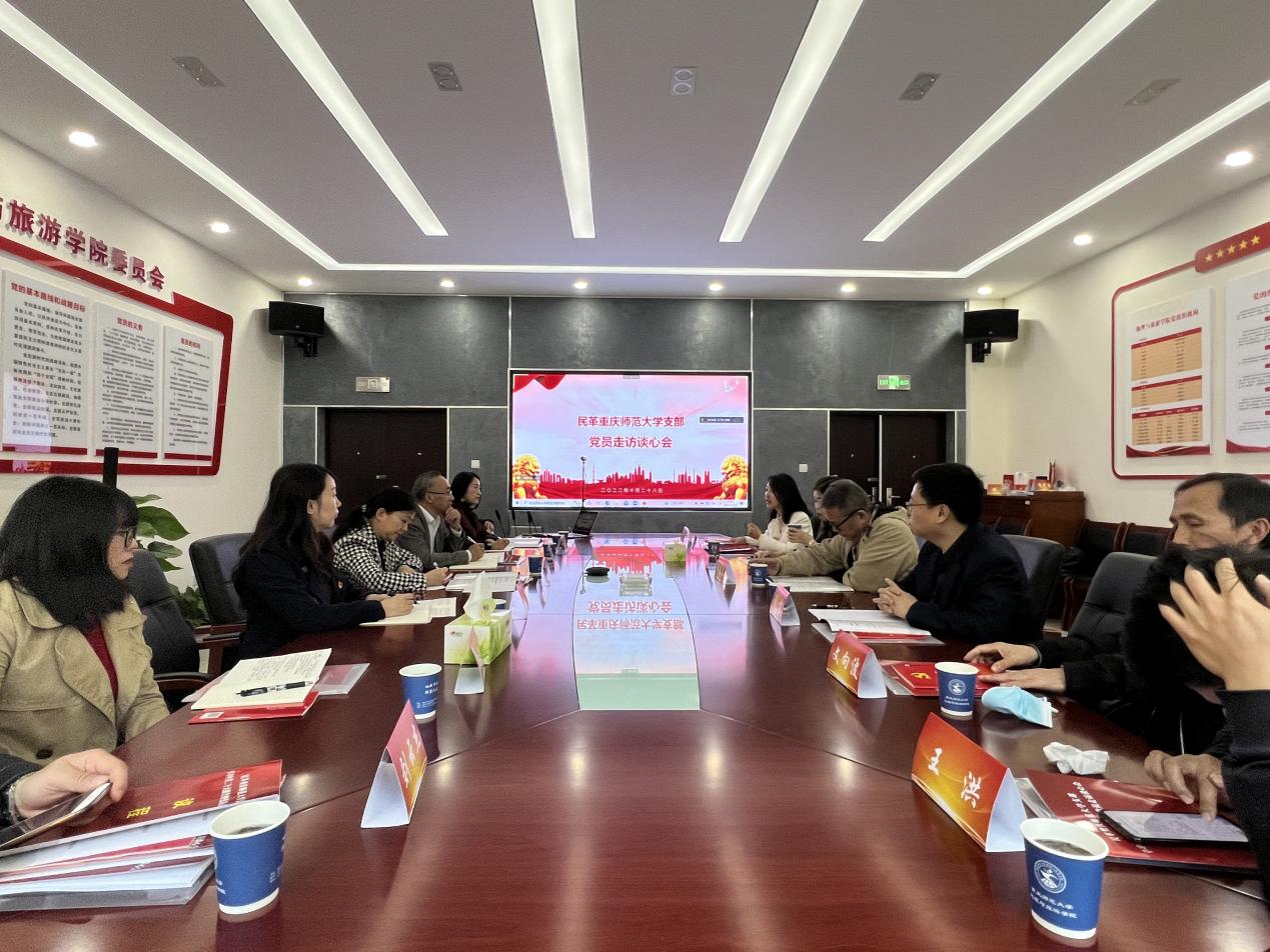 10月28日下午,民革PA视讯支部到我院开展了“学习中共二十大精神暨民革PA视讯支部党员走访谈心会”的首场活动,沙坪坝区政协副主席、民革沙坪坝区委会主委颜春龙,区委会专职副主委冯冿、副主委刘睿;校党委常委、统战部部长刘军;我院党委书记胡芳、副书记熊宇、专职组织员杨扬,民革重师支部全体党员等出席会议。会议由民革重师支部主委梁静主持。