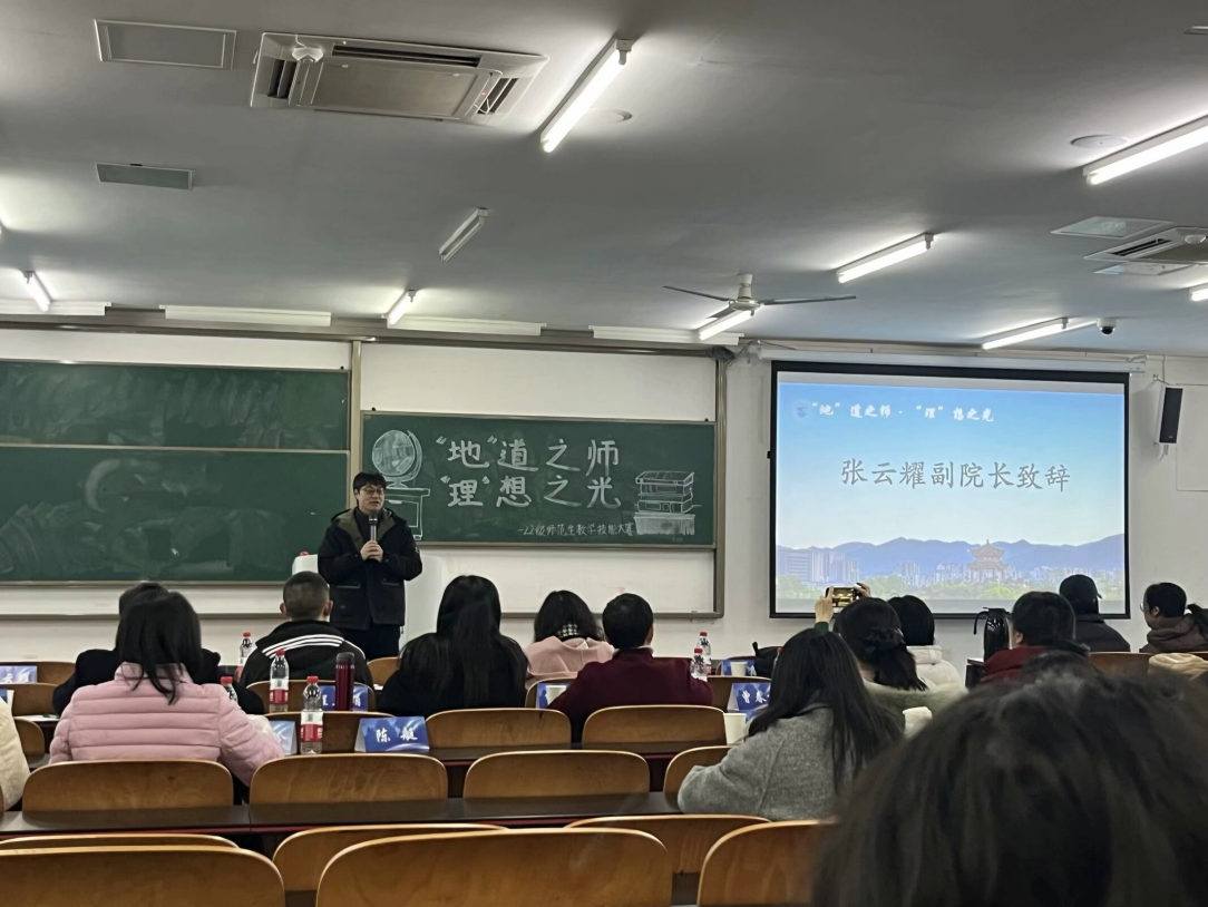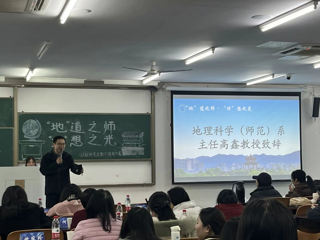 比赛开始前,我院副院长张云耀教授与地理科学系主任高鑫教授为本次大会致辞,张云耀教授肯定了本次大赛的意义并期待同学们的精彩表现,高鑫教授表示本次师范生大赛对提升同学们的师范生技能具有重要意义并为同学们加油助威。