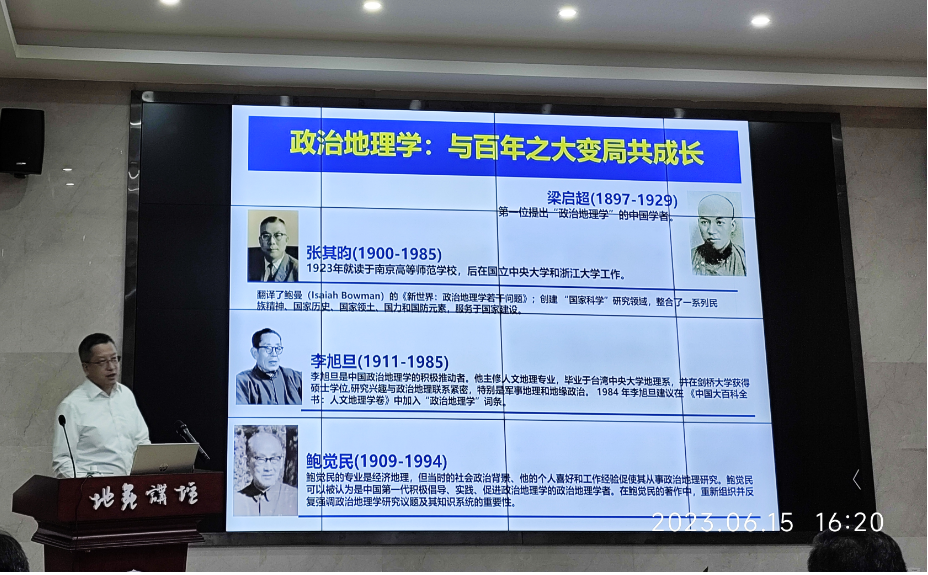 6月15日下午,PA视讯高端学术论坛“地苑讲坛”邀请了我国著名地缘政治学学者,华南师范大学地理科学学院院长、中国地理学会副秘书长、常务理事,中国地理学会政治地理与地缘关系专业委员会副主任——刘云刚教授,作题为“政治地理学与国家建设”的专题报告。报告在学院致用楼117会议室举行,PA视讯全体教职工和部分学生共计100余人参加了会议。会议由学院副院长刘睿教授主持。