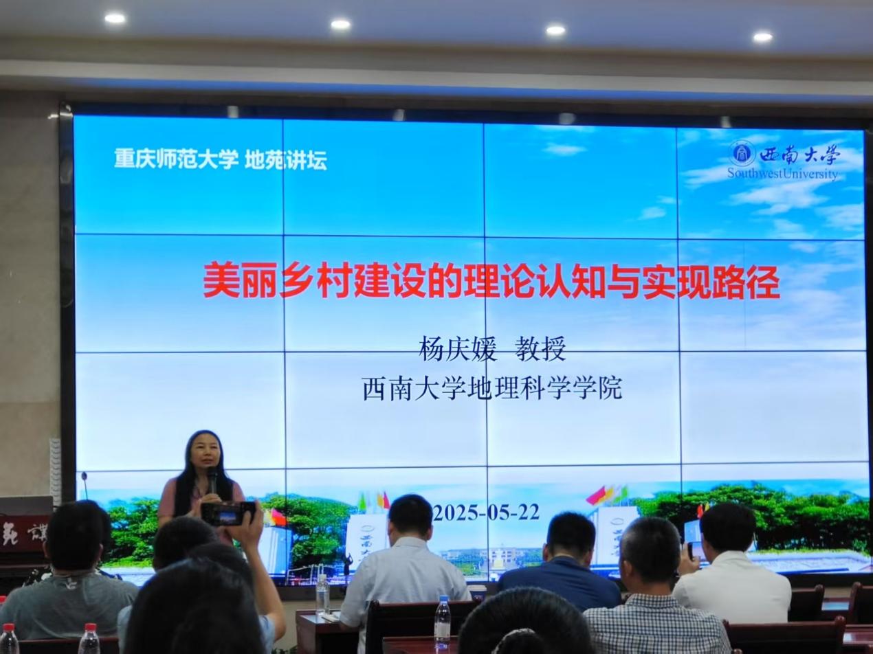 2025年5月22日,我院高端学术论坛“地苑讲坛”邀请了西南大学杨庆媛教授,作题为“美丽乡村建设的理论认知与实践路径”的专题报告。报告在致用楼117会议室举行,学院教职工、重庆市骨干教师培训学员(高中地理)、研究生等150余人参加了会议。会议由韦杰院长主持。