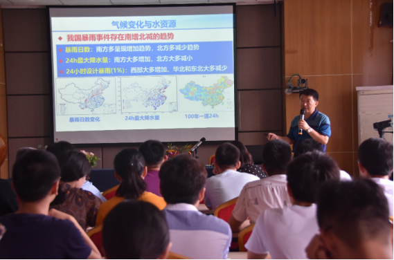 2019年6月20日上午,水利部应对气候变化研究中心总工、南京水利科学研究院王国庆研究员应邀做客我院,带来一场题为“气候变化与水资源:影响及适应”的学术报告。讲座由三峡库区地表过程与环境遥感重庆市重点实验室主任邵景安研究员主持,学院60余名师生参加。