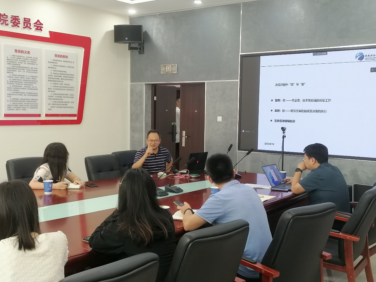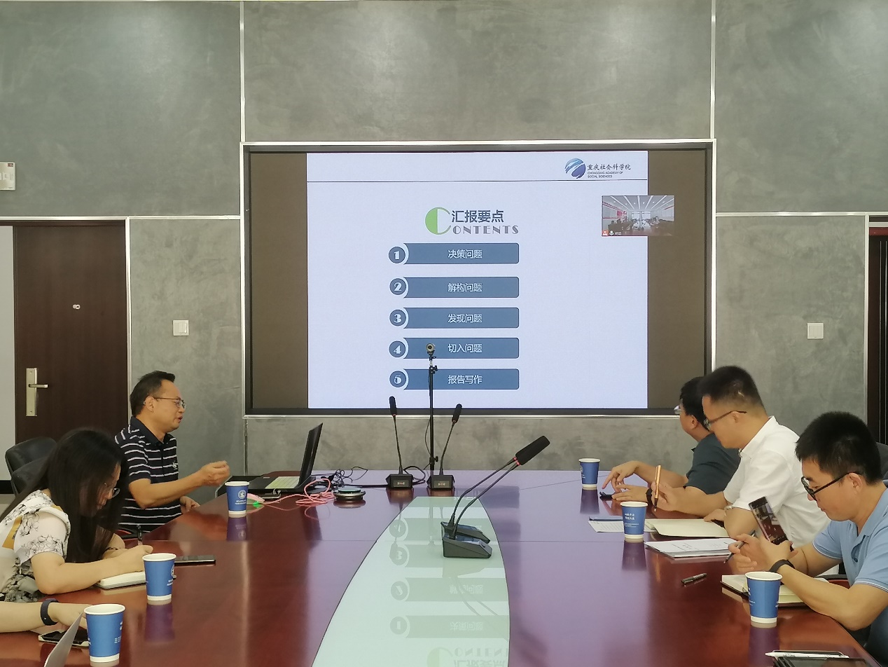 报告中,彭国川研究员从决策问题、结构问题、发现问题、切入问题和报告写作等五部分深刻解析了决策建议的源起、发展完成过程,系统深入阐释了决策咨询研究的问题范式。同时,结合咨政案例,从研究对象的应然状态、实然状态和差距三个部分来深入解构问题;从研究问题的现象、原因及影响三个维度来描述问题;从理论预期和现实的反差、理论预期与政策之间的反差、政策与现实的反差等方面讲解了如何去发现决策咨询研究中的问题;如何从事物发展的阶段性去切入问题;以及决策咨询研究报告的写作技巧。报告结束后,彭国川研究员与参会师生进行了热烈的讨论,通过本次交流,进一步加强了我院与重庆社会科学院沟通交流及合作,并推进了学院人文地理创新研究等相关团队咨政服务能力的建设。