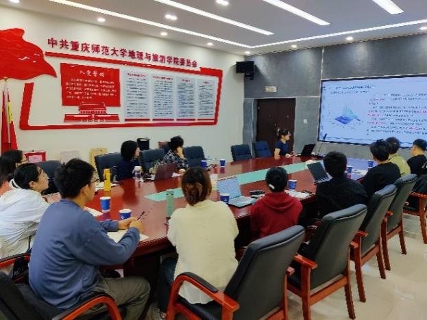 会上同学们围绕旅游经济韧性、绿色交通技术创新效率、碳储量时空变化及预测、公共服务高效化发展动态监测、高质量绿色发展、油料作物生产时空演变等研究内容,进行了热烈的讨论交流,开拓了同学们的研究视野,增强了同学们开展科研的积极性和主动性,会议达到了良好的效果。