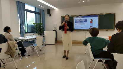 王雪婷老师进行了《客舱设备管理》的示范课教学。王老师以优雅的职业形象、生动的教具展示图文并茂讲解了客舱灭火设备中的海伦灭火器使用。并结合今天119全国消防宣传日的主题,带入了“预防为主,生命至上”的全民安全教育思政内容,进一步升华了课程主题。
