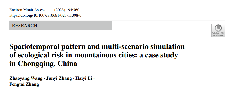 系列研究成果以题为《Spatiotemporal pattern and multi-scenario simulation of ecological risk in mountainous cities A case study in Chongqing, China》发表在国外著名期刊《Environmental Monitoring and Assessment》。我院硕士研究生王朝阳为第一作者,张军以教授为通讯作者。论文链接:https://doi.org/10.1007/s10661-023-11398-0.