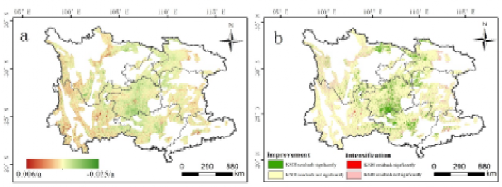 本研究构建了西南地区石漠化指数,分析人类活动和气候变化对喀斯特地区石漠化过程的影响,贵州石漠化的有效改善得益于林地面积的增加。