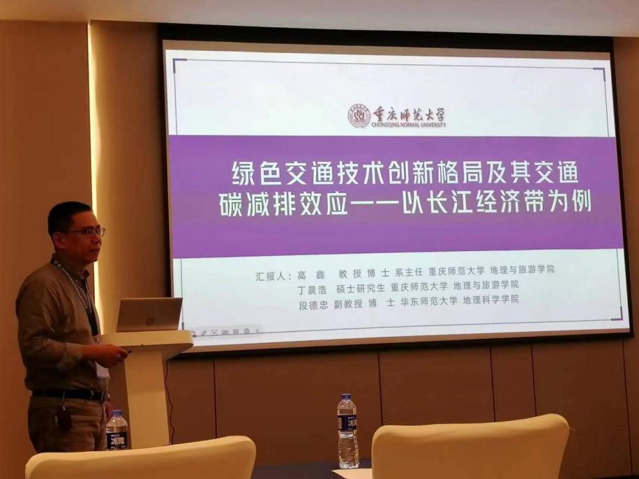 会议设置了特邀报告和分会场研讨等活动,邀请了傅伯杰院士、林珲院士、赵鹏军院士、樊杰研究员等知名学者做大会主题报告。我院人文地理创新研究团队高鑫教授在本次会议上主持了“区域创新与高质量发展”分会场并做了题为《绿色交通技术创新格局及其交通碳减排——以长江经济带为例》的分会场报告。该研究以万方数据知识服务平台为数据源,获取并建构了2001—2020年长江经济带城市绿色交通专利申请时空数据库,运用空间杜宾模型探讨了绿色交通技术创新对长江经济带各城市群交通碳减排的贡献,并初步确立了测度绿色交通技术创新的碳减排效应的合理空间尺度。
