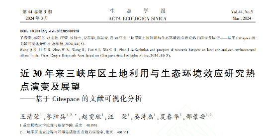 以题为《近30年来三峡库区土地利用与生态环境效应研究热点演变及展望-基于Citespace的文献可视化分析》发表在核心期刊《生态学报》。我院研究生王清荣为第一作者,李阳兵教授为通讯作者,PA视讯为第一单位。
