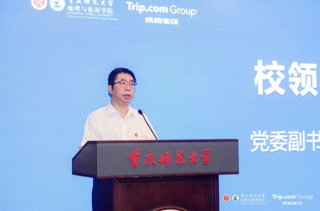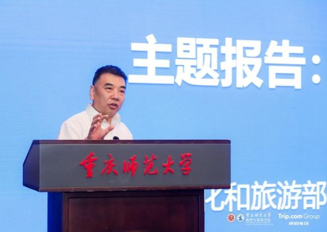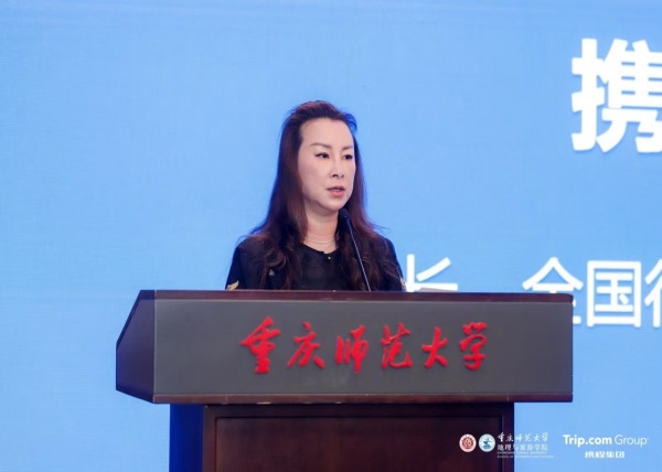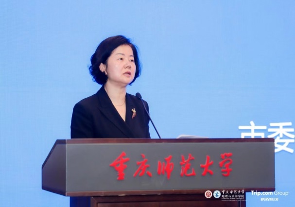 重庆市高教学会余志祥秘书长致辞并表示希望智汇文旅创新发展论坛的与会专家学者、资深行业人士以此次论坛为契机,深入探讨发展旅游新质生产力、旅游高质量发展的科学机制路径,智汇八方、博采众长,共同推动重庆世界知名旅游目的地建设。携程集团旅游学院院长徐璐女士在致辞中介绍了携程近年来助力文旅产业高质量发展和产教融合方面沉淀的实践和经验,并表示期待能与在场政企研学用各界同仁一起,为“智慧旅游+”领域的学术研究、人才培养和行业实践献计献策、添砖加瓦,愿我们携手追求完美旅程、共建美好世界,让旅游者在这颗蓝色星球上更加幸福地行走。