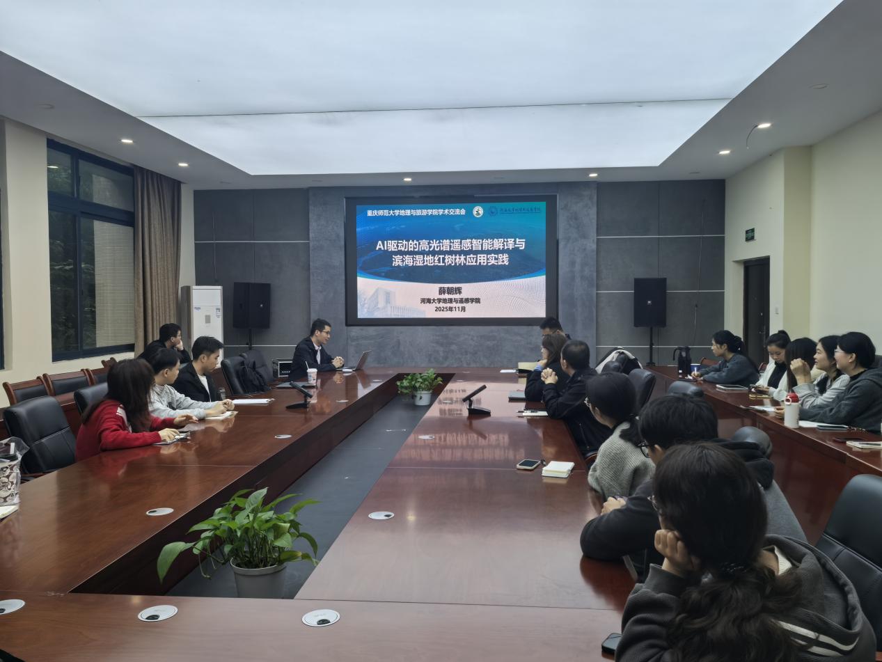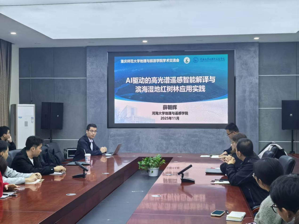 2025年11月7日,我院人文地理、GIS创新研究团队邀请河海大学地理与遥感学院薛朝辉教授作题为“AI驱动的高光谱遥感智能解译与滨海湿地红树林应用实践”的学术报告。报告在致用楼220会议室举行,由张军以教授主持。学院魏兴萍教授、杨颖副教授、汪垚副教授、雷超桂副教授、杨国胜副教授、李林芝博士、王小丽博士,以及学院人文地理和GIS专业硕士研究生等50余人参加了报告会。