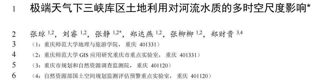 研究成果以“极端天气下三峡库区土地利用对河流水质的多时空尺度影响”为题发表在《湖泊科学》上。GIS应用创新团队研究生张琼为第一作者,张静老师为通讯作者。