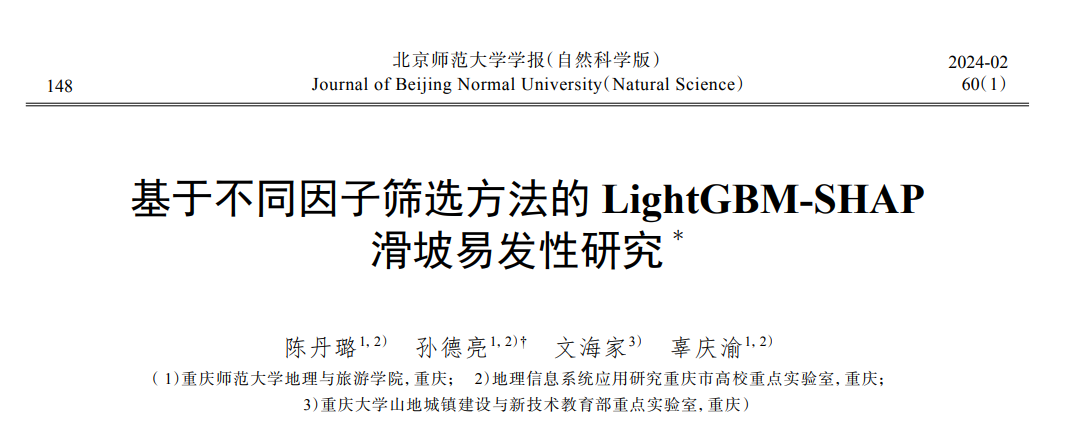 随着全球自然条件变化和受人类活动的不断影响,滑坡成为威胁人类生命和财产安全的重要自然灾害之一。为了提供更准确的滑坡风险评估和防灾决策的科学依据,在我院孙德亮教师的带领下,2020级地理信息科学本科生陈丹璐发表了系列关于滑坡易发性评价的学术论文,其中SCI期刊论文一篇(Land),中文核心期刊论文两篇(《地质力学学报》和《北京师范大学学报》)。