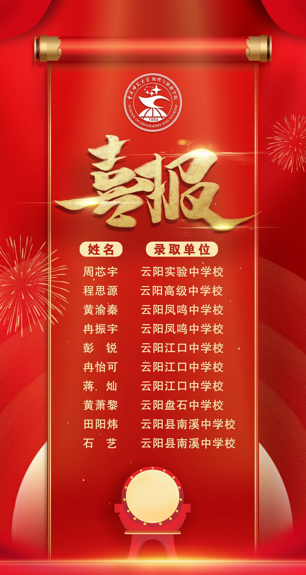 在重庆市云阳县教育事业单位面向2025届高校毕业生公开招聘中,地理科学(师范)专业的学子们凭借深厚的专业知识、精湛的师范技能和卓越的面试表现,获得了各招聘学校的高度认可,十名学子成功签约,占本次地理学科招聘人数的83.3%。期待这些优秀的毕业生能够在未来的工作岗位上发光发热,为国家基础教育事业贡献自己的力量。