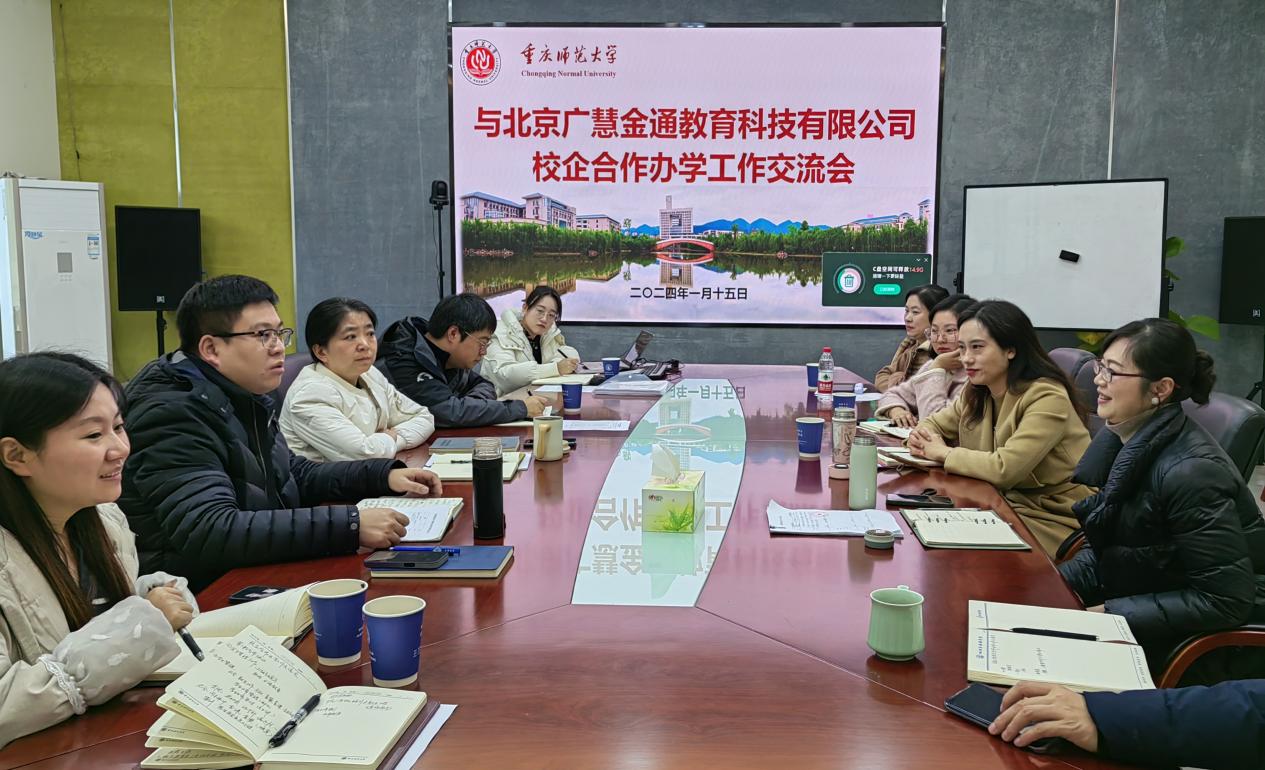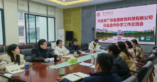 2024年1月15日下午,学院在大学城校区致用楼335会议室召开了航空服务艺术与管理专业校企合作办学工作交流会,金通公司驻重师工作处主任杨曦及班主任陈昱竹与学院党委书记胡芳、副院长(主持工作)韦杰、党委副书记熊宇、院长助理张云耀、教科办主任陈宁、系主任谢媛媛等11人参加了会议,会议由胡芳书记主持。