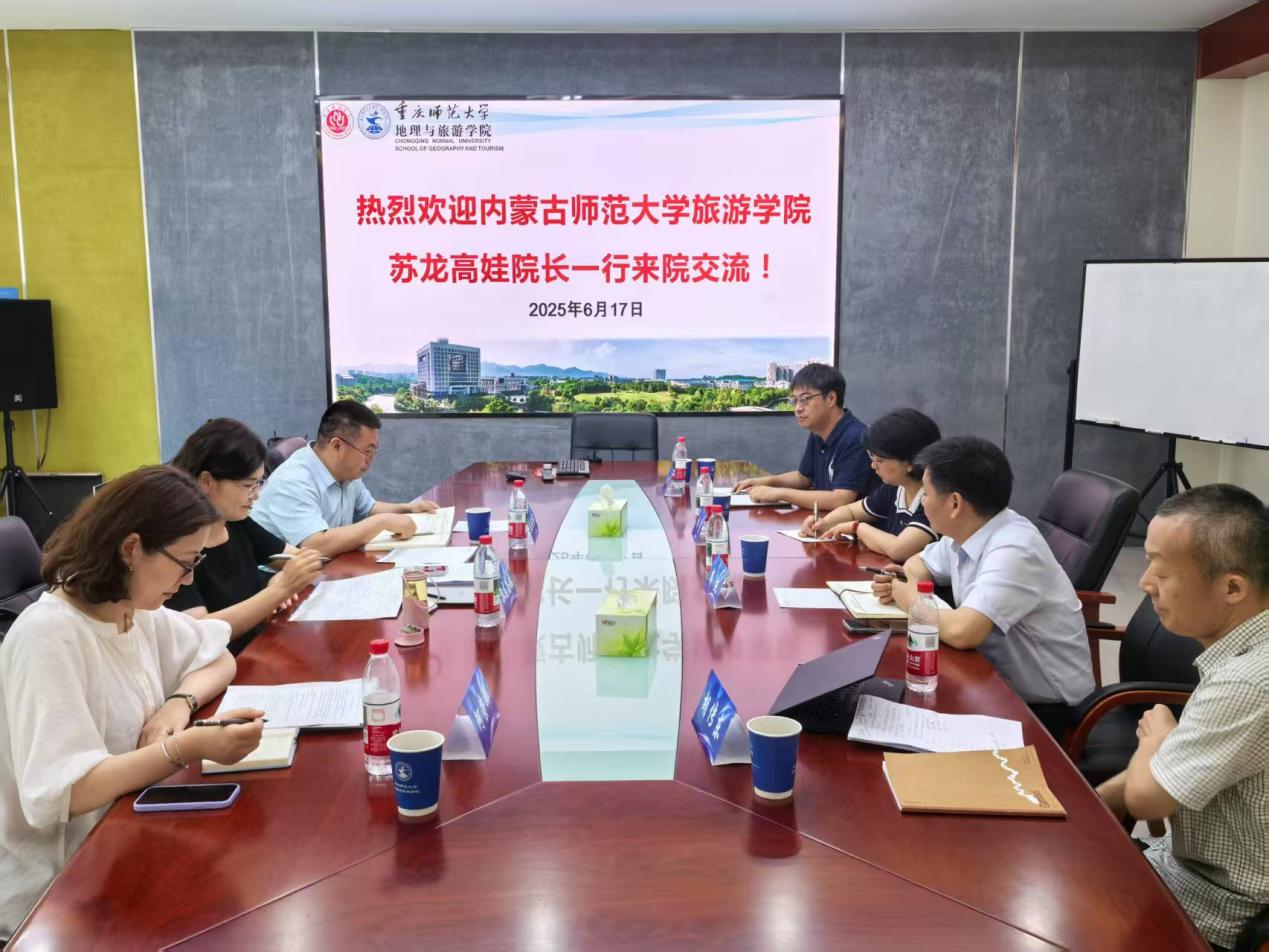 2025年6月18日,内蒙古师范大学旅游学院院长苏龙高娃、副院长秦兆祥、旅游管理系主任阿荣娜一行到我院进行交流。学院党委书记胡芳、执行院长韦杰、院长助理张军以、职业技术教育(旅游服务)方向领衔导师胡传东参与交流,副院长张云耀主持交流会。