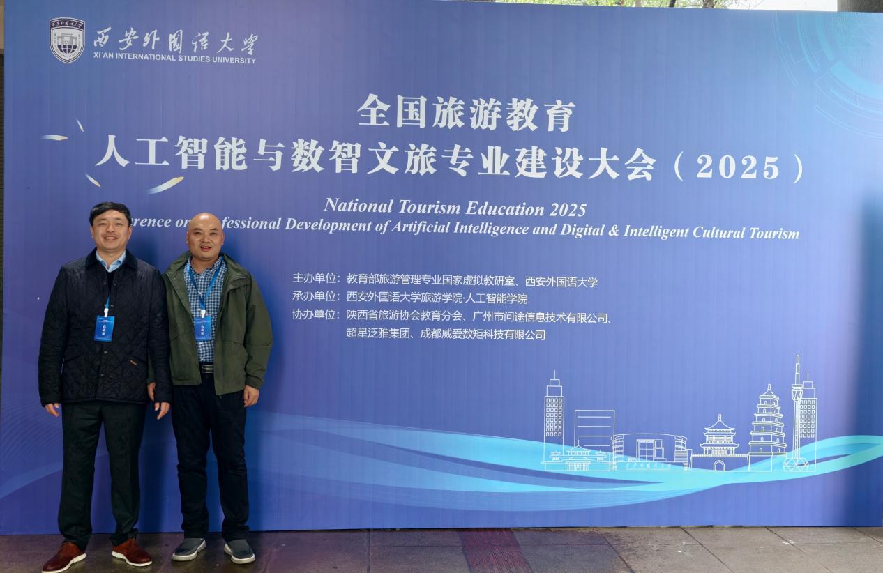 2025年10月24日,由教育部旅游管理专业国家虚拟教研室与西安外国语大学联合主办,西安外国语大学旅游学院·人工智能学院承办的“全国旅游教育人工智能与数智文旅专业建设大会”在西安外国语大学长安校区成功举办。我院旅游管理系系主任周刚副教授、旅游管理系教师王泽博士参会,就数字化课程体系建设、师资团队建设、产教融合模式创新等话题进行了深入交流。