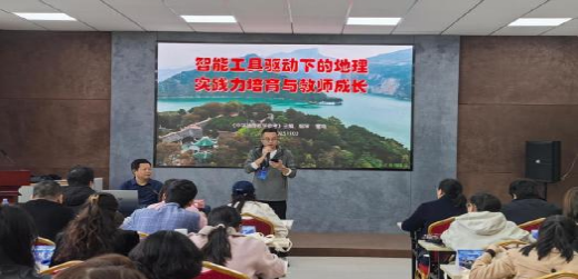 介绍《中学地理教学参考》主编编审雷鸣老师带来了《智能工具驱动下的地理实践力培育与教师成长》专题讲座。讲座以故事入题,剖析人工智能时代带来的机遇与挑战,重点探讨AI技术如何赋能研学实践。雷老师结合具体案例,分享地理实践力培养路径,阐述过程教师的专业成长。这场未来教育与地理实践的思想盛宴,将引领参训学员深入探究新思考方式与地理实践力培养的深度融合