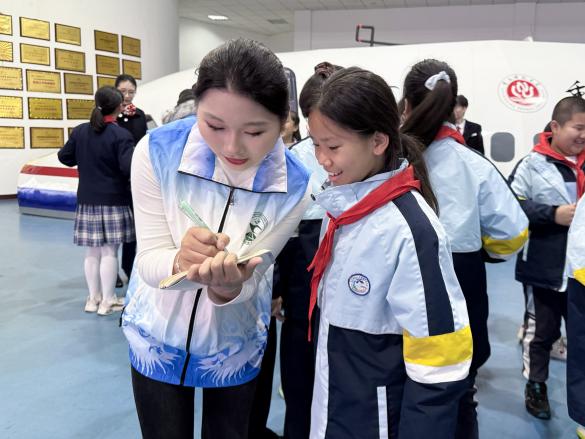 在航空教学实训楼,我校航空服务艺术与管理专业宣传部40余名成员全程接待与讲解,为小学生们带来了一场沉浸式、互动性强的航空知识启蒙之旅。在志愿者引导下,小朋友们来到了模拟客舱实训室,当看到一比一还原的真实飞机客舱时,孩子们发出了阵阵惊叹。空乘宣传部的“空乘人员”们不仅细致讲解了客舱内的设施设备,如座椅、行李架、阅读灯和呼叫铃的使用方法,还带小朋友们现场体验了从登机到下机的全流程服务。随后,在航模展厅,志愿者们用浅显易懂的语言,向孩子们介绍了中国民航的基本知识和国内具有代表性的航空公司,生动的讲解激发了孩子们浓厚的兴趣,他们纷纷举手提问,现场气氛热烈,俨然一堂活泼有趣的航空安全知识科普课。