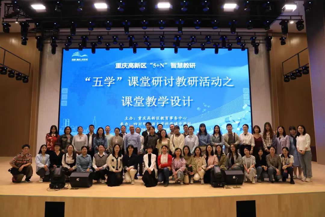 曾春芬(第一排右1)指导毕业的本科生在重庆市高新区举办的“五学”课堂研讨教研活动上做课堂展示