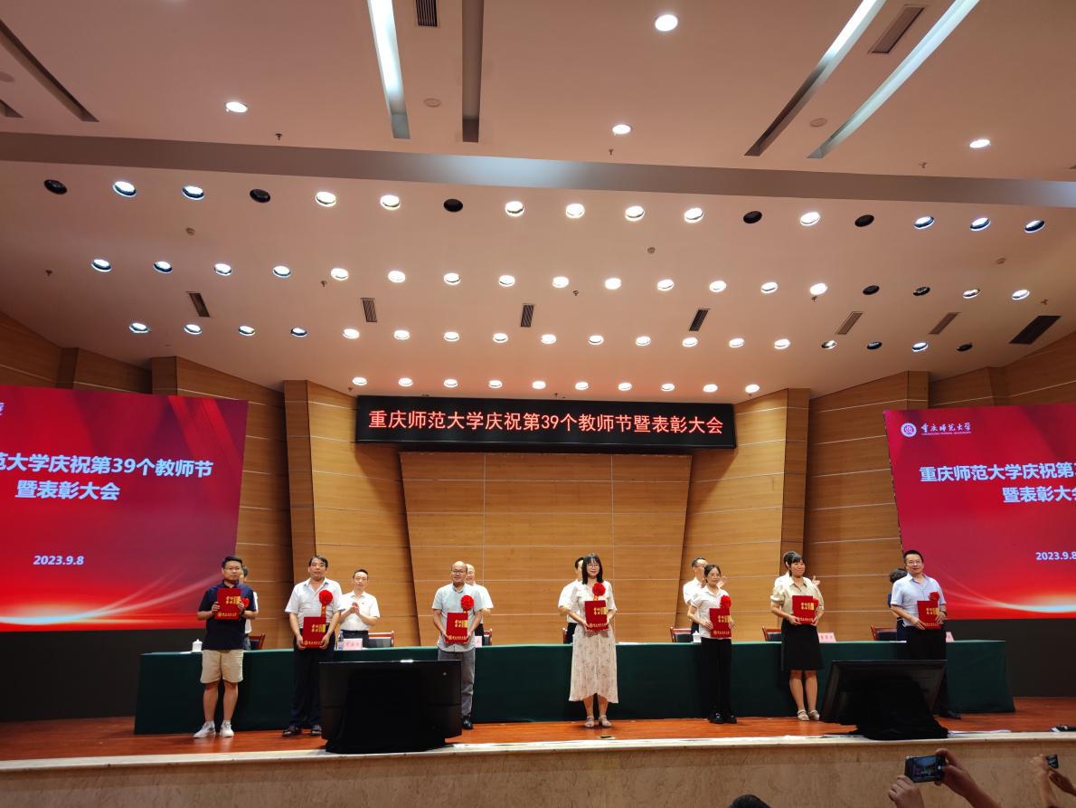 曾春芬(右3)在PA视讯第39个教师节暨表彰大会荣获“最受欢迎教师”