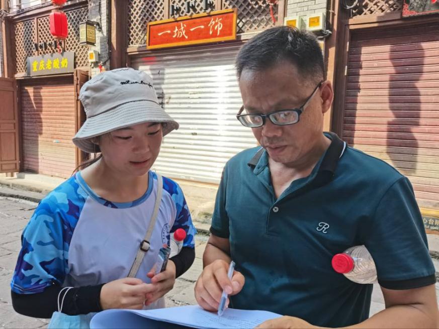 发动磁器口游客填写关于垃圾分类的调查问卷 (舒影欣摄)