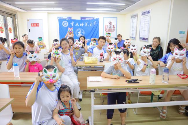 7月21日,实践团队来到重庆市沙坪坝区磁器口磁建村社区,和小朋友们一起绘制脸谱。小朋友们拿起画笔,勾线,调色,精心描绘,一张张漂亮、精致的脸谱应运而生。不仅有利于培养小朋友们艺术的鉴赏能力,也能让他们感受到传统文化的魅力。