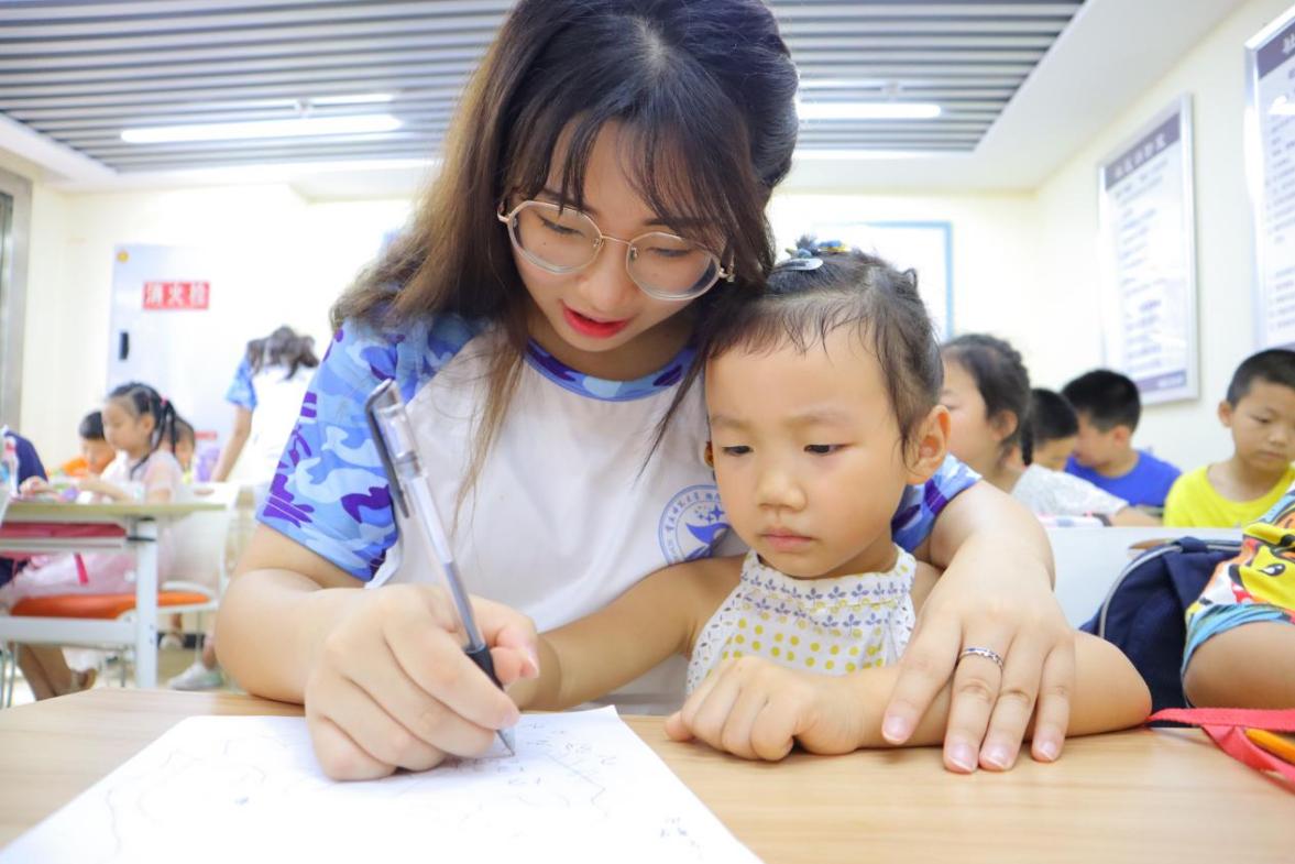志愿者在给小朋友们上口才培训课  (胡雪微 摄)
