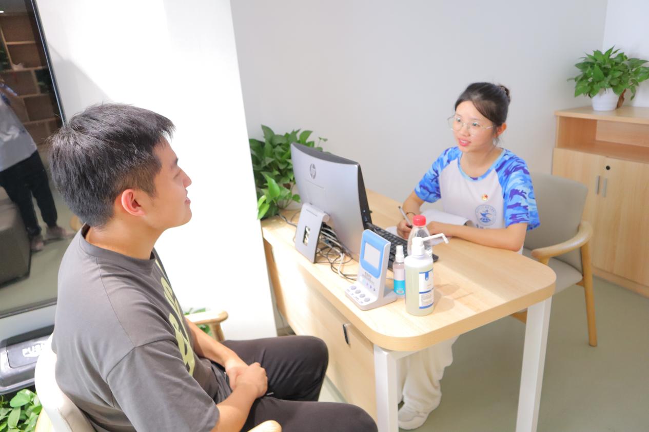 志愿者与社区残障居民进行沟通   (肖中英 摄)