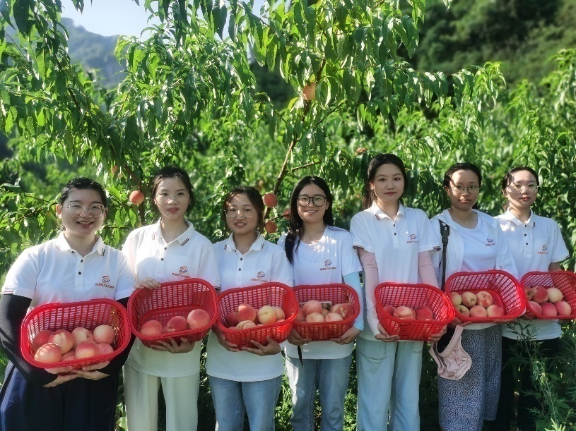 志愿服务团成员采摘脆桃后合影留念 (刘守权 摄)