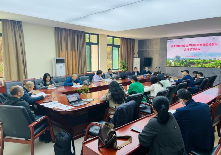 副院长(主持工作)韦杰教授就本次研讨主要背景进行了说明,传达了学校党委书记张艳教授等领导的指示。团队秘书杨永丰副教授组织团队成员学习《关于加快建设世界知名旅游目的地的意见》文件。