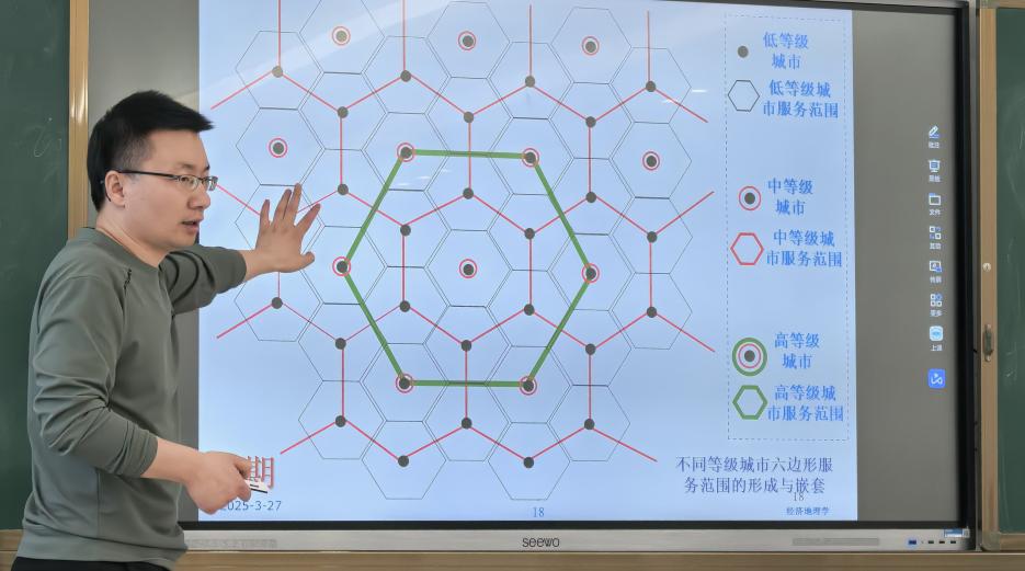 张忠训老师在《经济地理学》课程中,以生动的案例解析第三产业布局与商业区位选择的科学原理,通过动态地图演示产业布局的动态变化,深入浅出地阐释了“地理区位”“中心地等级”“人口门槛”等核心概念,引导学生从宏观视角理解区域经济发展的逻辑。