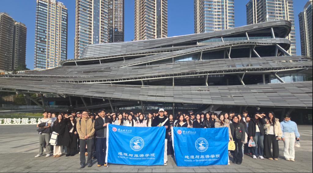 在课程负责人巫昊燕老师与谭航老师的共同带领下,2024级航空服务艺术与管理专业全体学生走进重庆市规划展览馆,开展《民用航空地理》现场教学。巫昊燕老师已连续三年渐进式优化该课程教学体系,将课堂搬进展馆,让学生直观感受重庆“山水之城”的独特魅力。通过系统学习国家战略定位、区县特色产业、历史人文脉络非遗文化及城市规划等相关知识,使学生的乡土情怀得以深植于心。该课程教学团队已指导学生斩获国家级、省部级学科类竞赛奖项十余项,课程亦获评校级课程思政示范项目。这种地理空间+航空服务+文化传承的跨界融合模式,有效实现了知识传授、能力培养与价值塑造的有机统一。